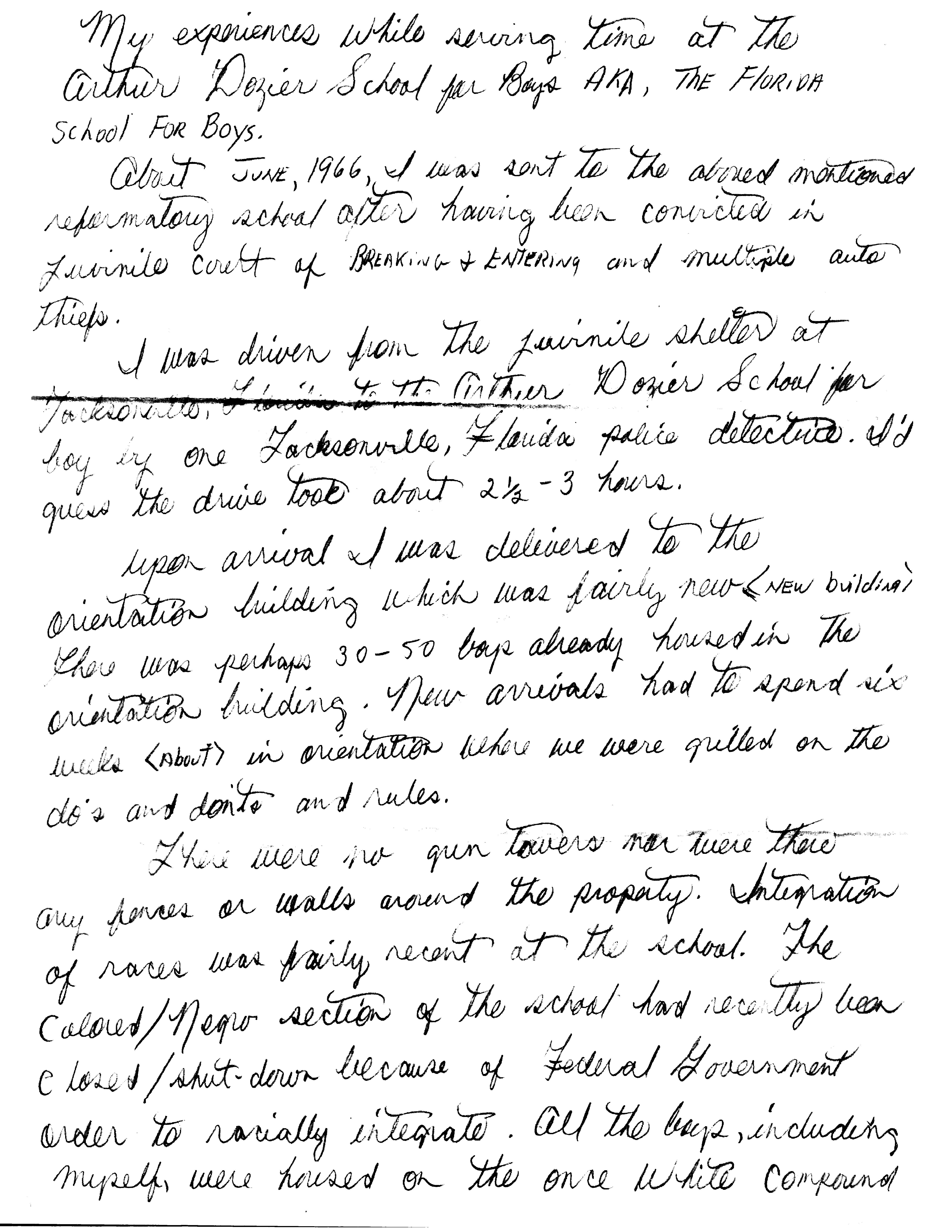 I was driven from the juvenile shelter at Jacksonville, Florida, to the Arthur Dozier